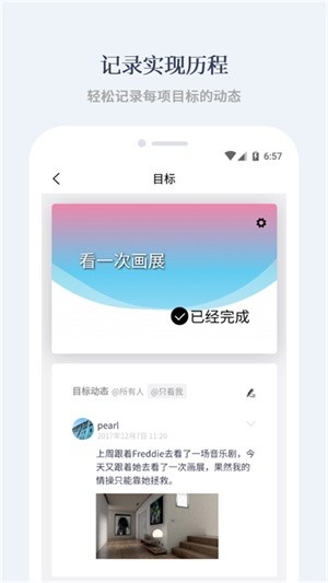 1、你可以为自己规划完成的时间,还可以在目标下记录过程中的动态。