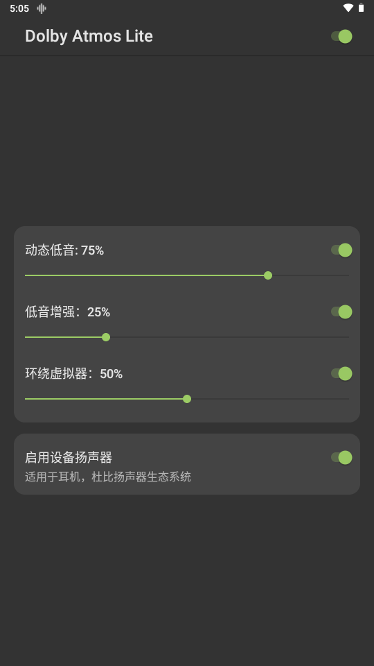 Dolby Atmos Lite,精简版音效神器!专为个人用户设计,适配电视、手机等多设备。简单界面,轻松体验沉浸式音效。动态低音调节,音效增强,环绕式虚拟声音,身临其境。完美融入杜比扬声器生态,操作便捷,功能强大。观影、听音乐、玩游戏,震撼细腻尽在掌握!