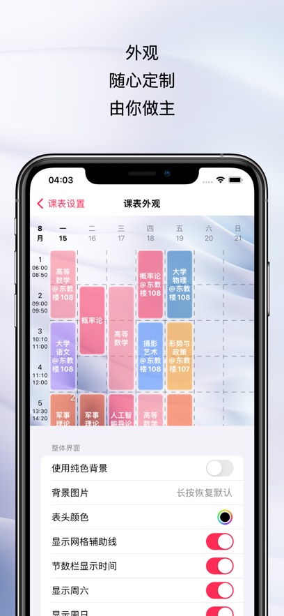 这里还可以在线进行课表的设置,用户可以轻松的设置界面的颜色。