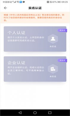 2、如果是个人用户可以点击【个人认证】,企业用户可以点击【企业认证】